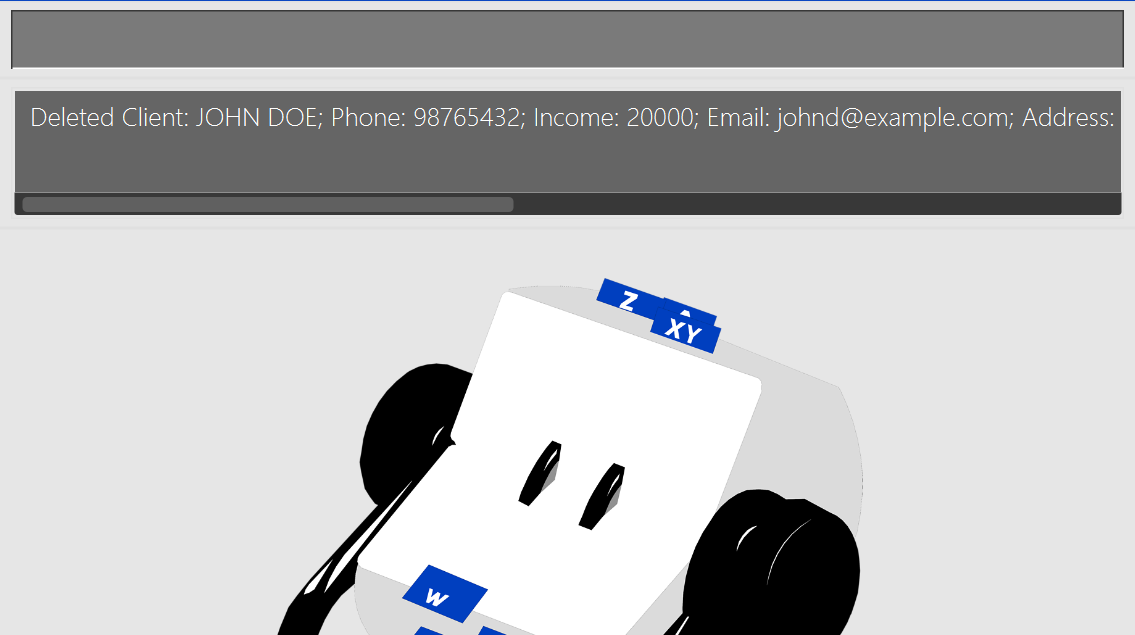 Let's search for our new client John, by simply keying in the command: filter n/John